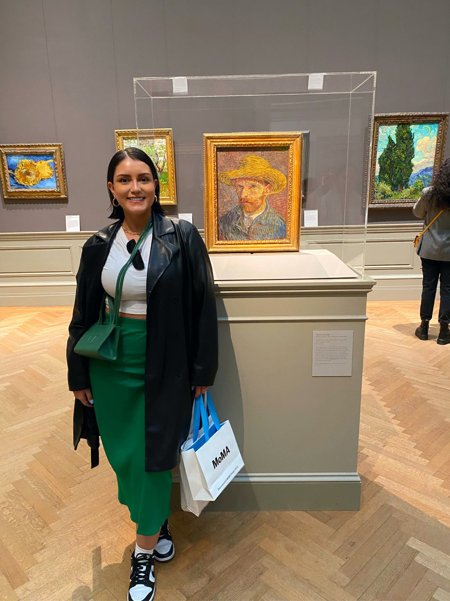 Fabiola gets inspiration from the shades of blue in Vincent Van Gogh’s paintings, the vibrant details of Andy Warhol and simplicity of Keith Haring.